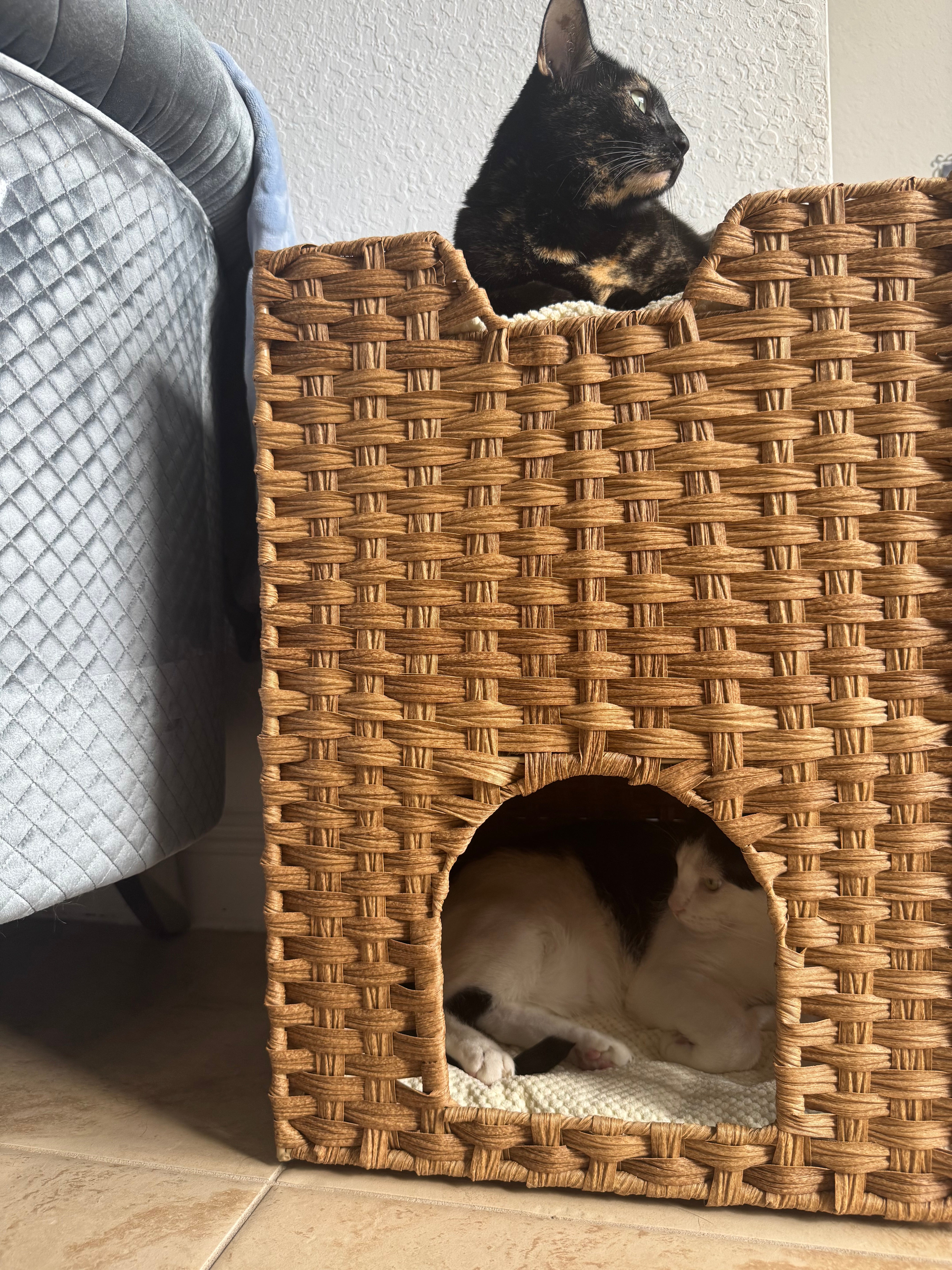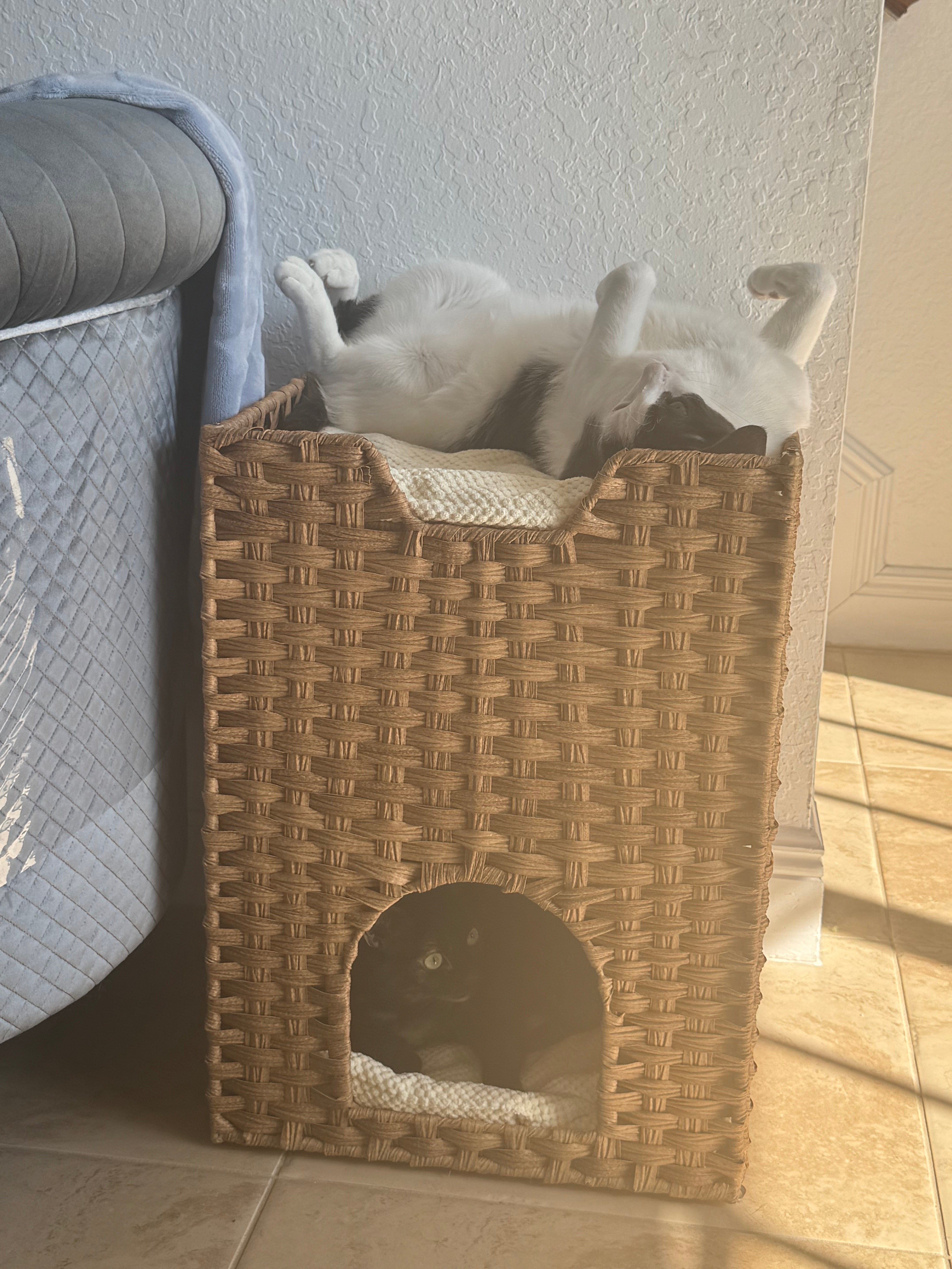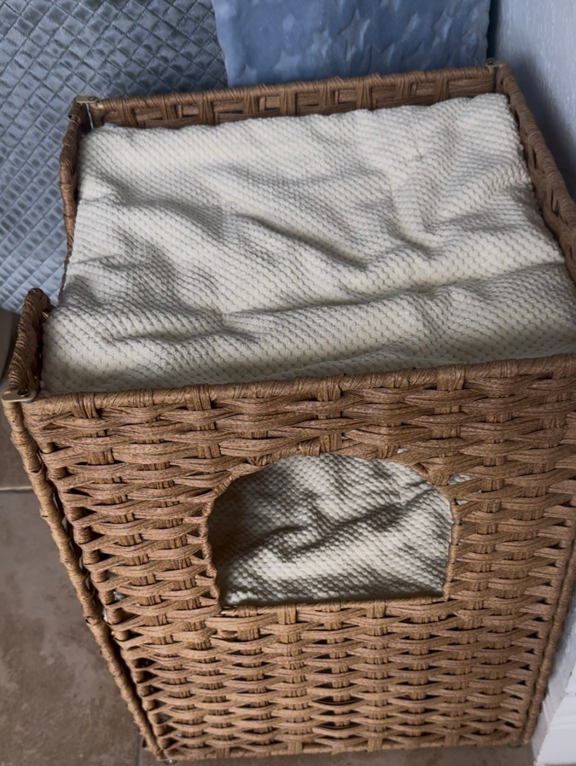 This triple-layer rattan cat house is part of our Used for Good project and was used once for review purposes by Cats Ace Angels.
